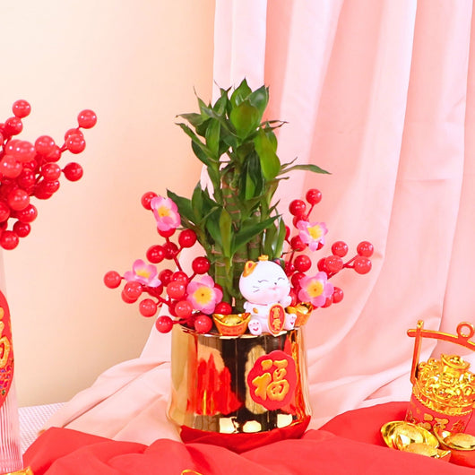 Delight this Chinese New Year with our Flower & Gift set featuring a charming Fortune Cat, elegant vase, and festive flowers. Priced at an affordable price, it’s ideal for auspicious gifting with reliable Chinese New Year gift delivery KL & PJ for homes and businesses.