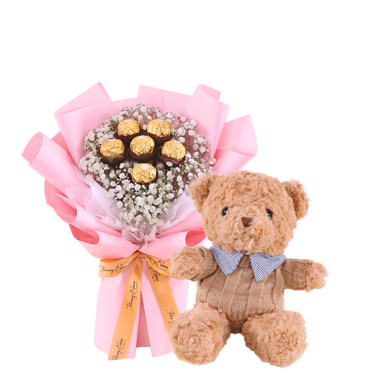 Teddy Bear S size 30cm (1 pc)Ferrero Rocher chocolate (6 stalks) |