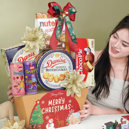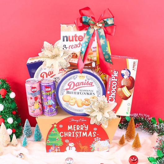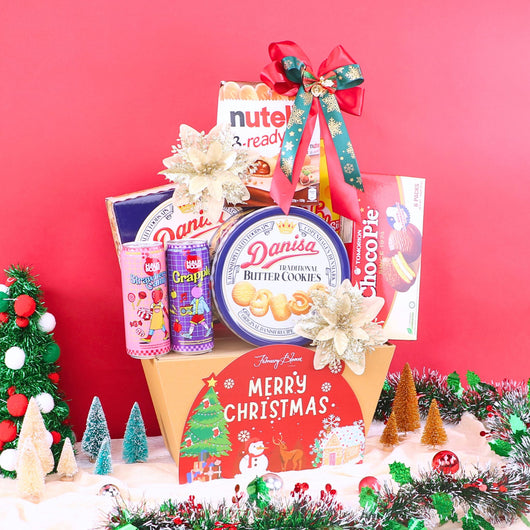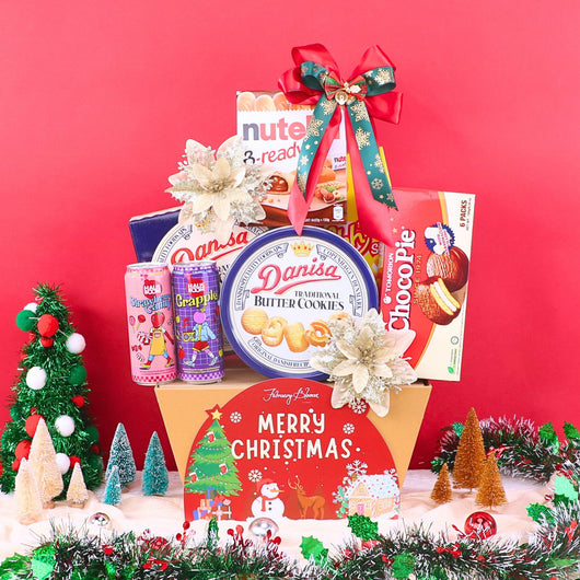 Delight your loved ones with a Christmas gift hamper featuring cookies & a mix of variety item. Enjoy affordable price and fast same day Christmas gift hamper delivery in KL, perfect for spreading festive cheer with a thoughtful, convenient gift.