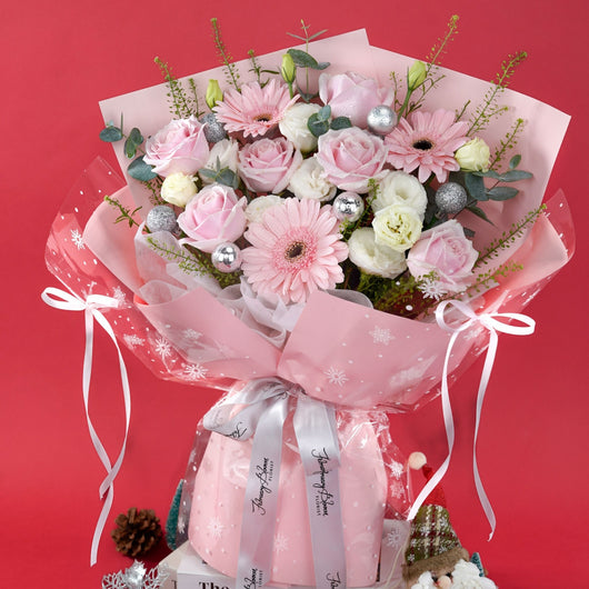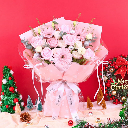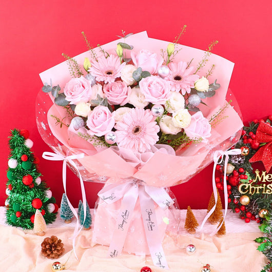 Brighten Xmas2025 with our stunning Christmas Flower Bouquet, featuring fresh flowers, vibrant roses & cheerful gerbera daisies. Perfect as a Christmas flower gift, enjoy same day delivery across Klang Valley at a cheap price, spreading festive joy and color.