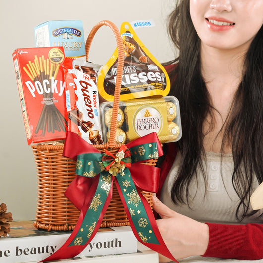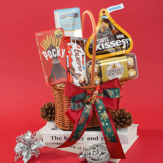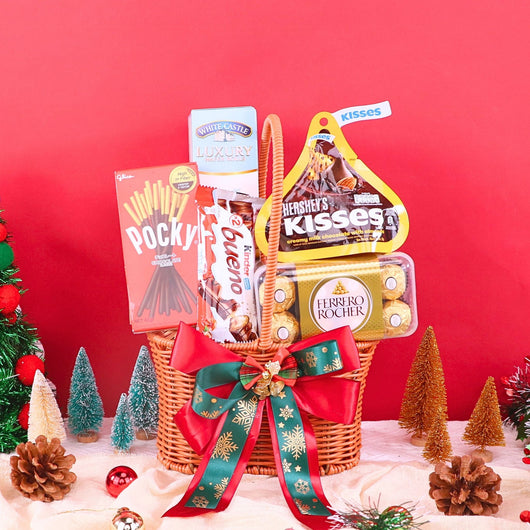 Discover our Christmas gift hamper featuring 1 basket mix of variety chocolate, the perfect Xmas gift at an affordable price. Enjoy premium treats with same day delivery in Kuala Lumpur, making festive gifting easy and memorable.