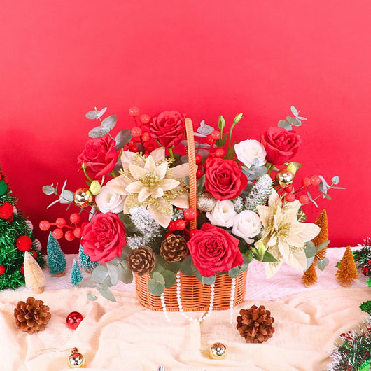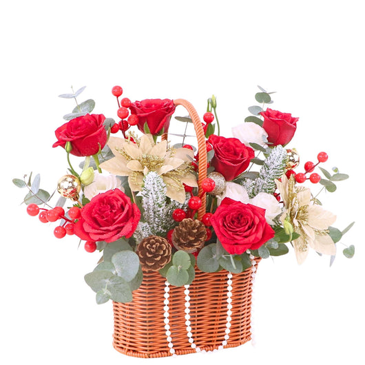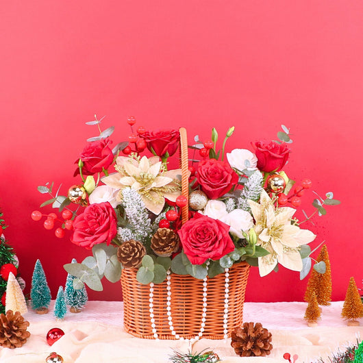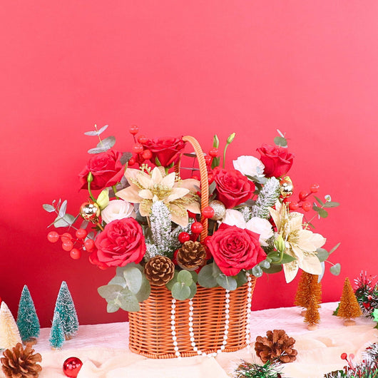 Celebrate Christmas2025 with our stunning flower basket featuring Fresh red roses & Artificial flowers. Enjoy Christmas flower same day delivery KL at an affordable price,