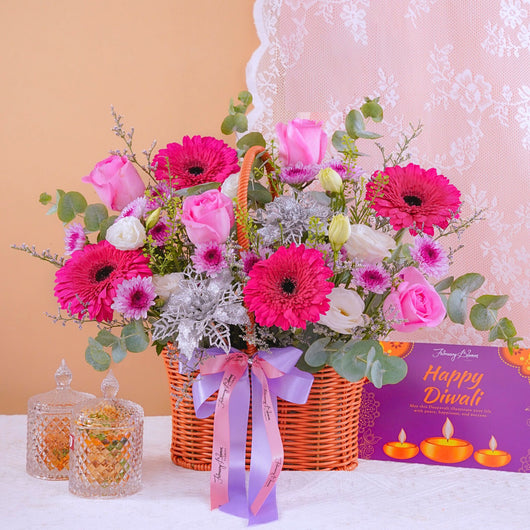 Discover the best Deepavali gifts delivery in KL & PJ with our stunning online flower baskets. Featuring fresh roses, gerbera daisies, and elegant artificial flowers, these unique Diwali gift ideas come at a cheap price with fast delivery across Klang Valley.