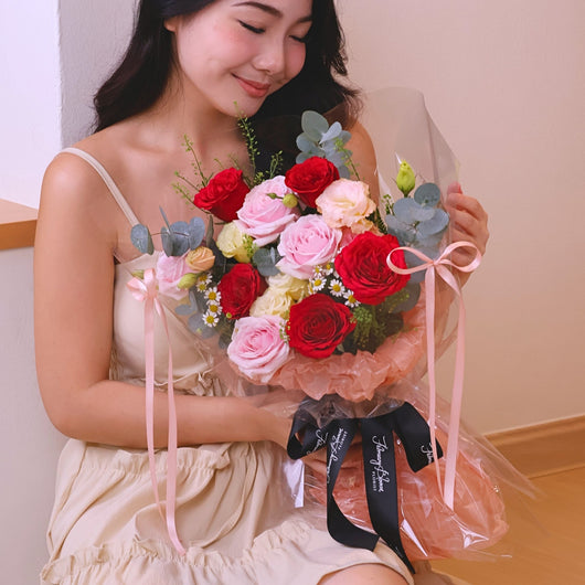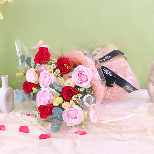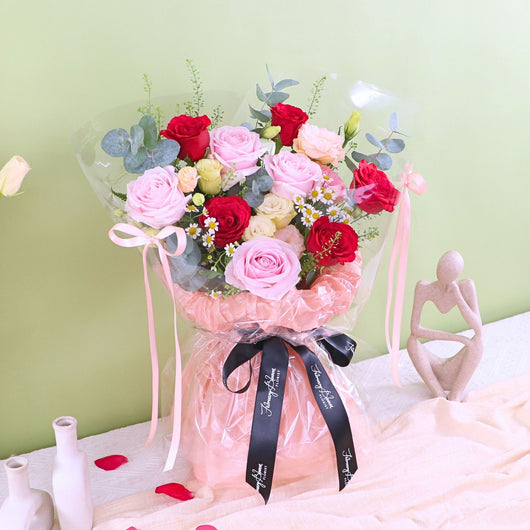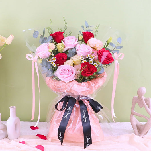 Embrace elegance with Midnight Rose, a round bouquet of fresh flowers and delicate red & pink roses, inspired by the quote “Where there is great love. Thoughtfully arranged for any occasion, with fast flower delivery in Kuala Lumpur. Share the love with Midnight Rose.