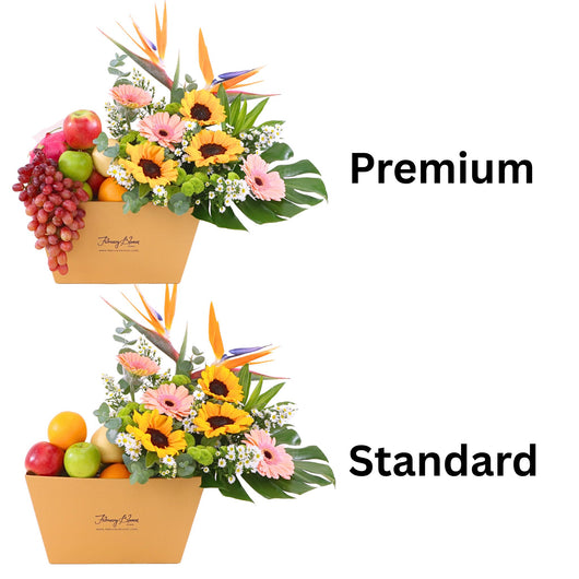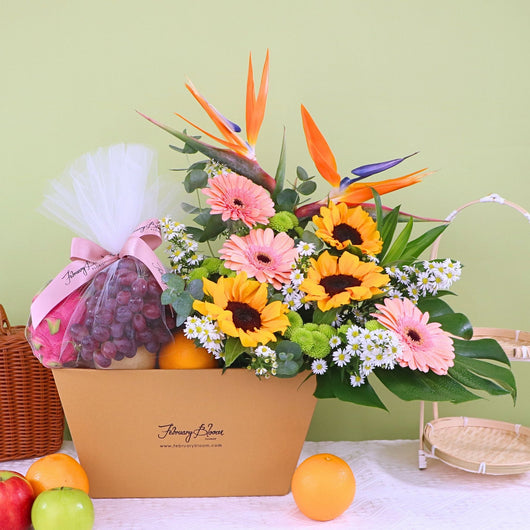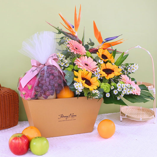 Celebrate with our Fruity Party Hamper, a delightful blend of fresh fruits and vibrant flowers. The perfect way to send your warmest congratulations and spread joy or maybe cheer up for get well soon patients on any occasion. Order now and make their day extra special!