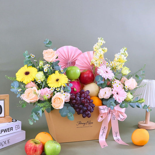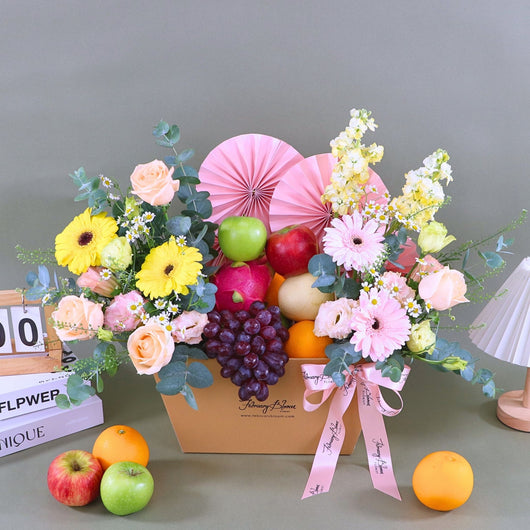 Brighten someone’s day with our Sunday Brunch Fruit Hamper, featuring a delightful mix of fresh fruits, beautiful hydrangeas, and a vibrant selection of fresh flowers. A perfect gift to send love and warmth for any occasion. Order now and spread the love!