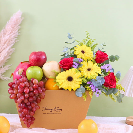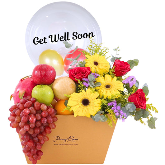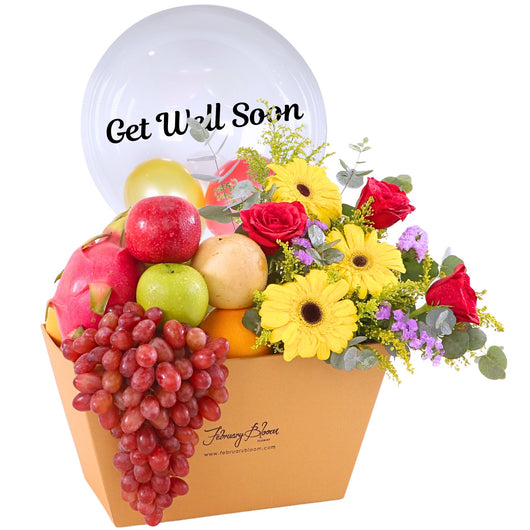 Experience tropical bliss with the Bali Tropicana Fruit Basket, featuring a vibrant mix of fruits, fresh flowers, and a charming air balloon. This unique basket is the perfect gift to bring a touch of exotic beauty and freshness to any occasion.