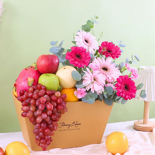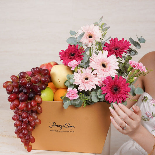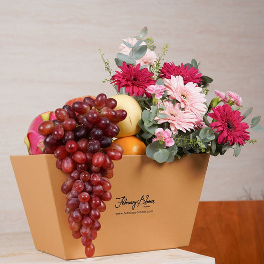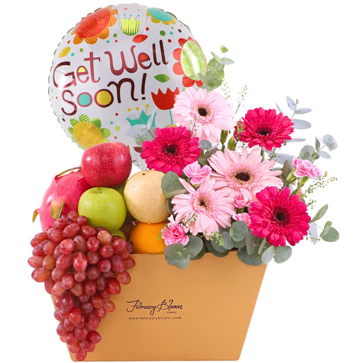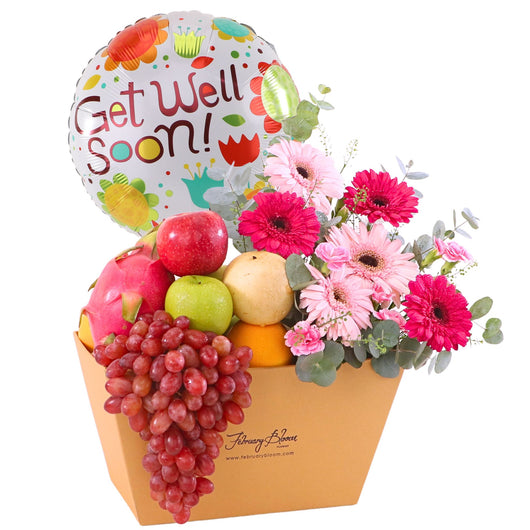 Indulge in the vibrant flavors of the California Greatness Fruit Basket, featuring a refreshing mix of fruits, fresh flowers, and a whimsical air balloon. A perfect gift to celebrate any occasion with a touch of sunshine and joy.