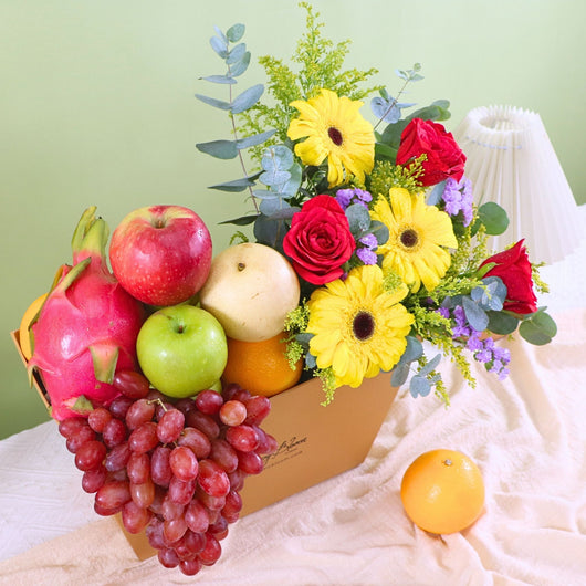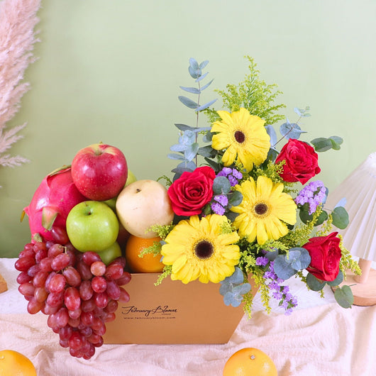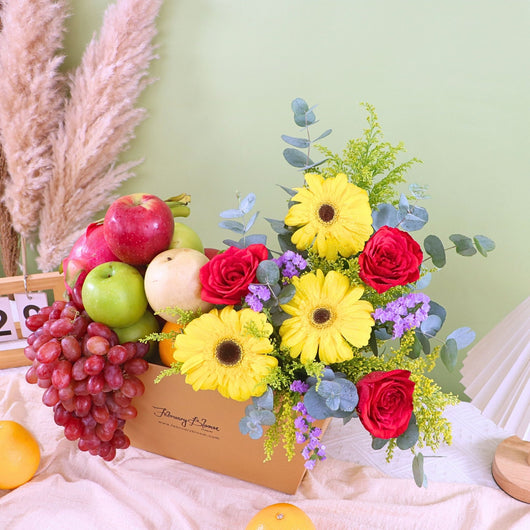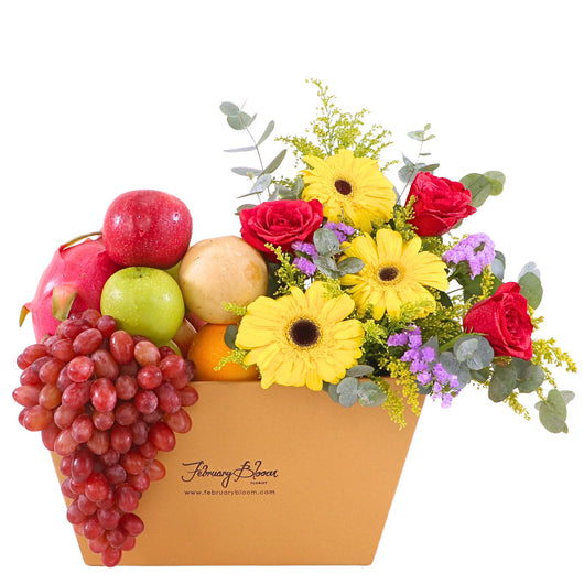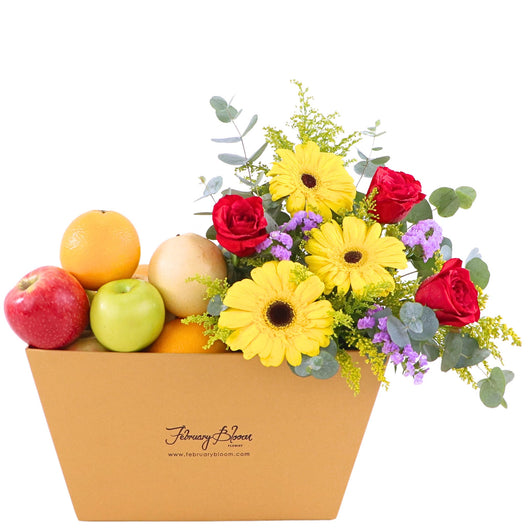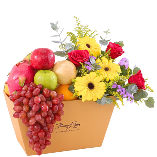 Send a thoughtful message with the Jambo King Fruit Basket, featuring a refreshing mix of fruits and fresh flowers. Perfect for saying "Take it easy" and wishing someone a speedy recovery with a cheerful Get Well Soon gift.