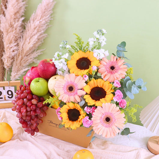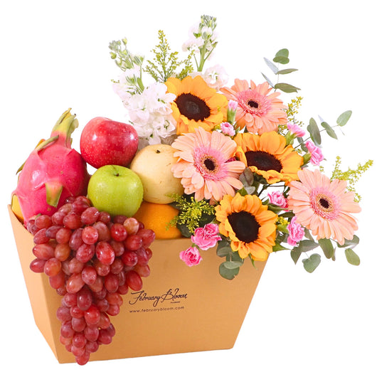 Send a burst of sunshine with the Tropical Bounty Fruit Basket, featuring a vibrant mix of fruits and fresh flowers. The perfect way to say, "Hurry, Get Well!" with a cheerful and refreshing gift.