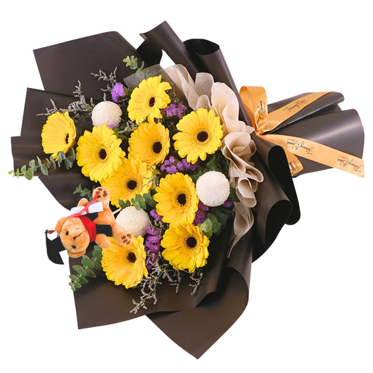 Bright, bold, and full of promise. Shine Ahead Blooms bouquet features fresh sunflowers that shine as bright as their future. A reminder that wishes do come true, perfect for celebrating this milestone moment.