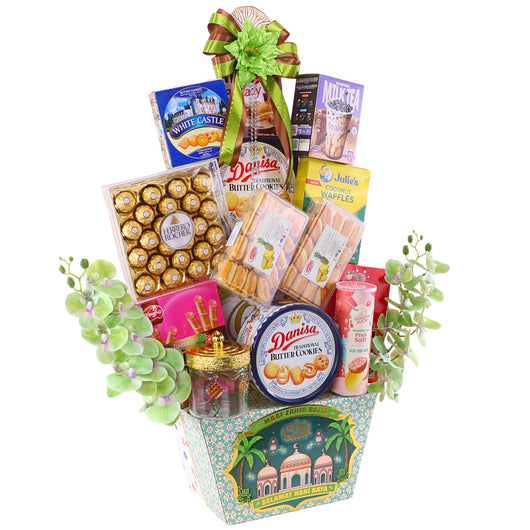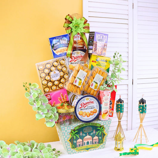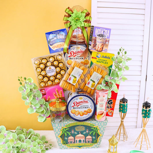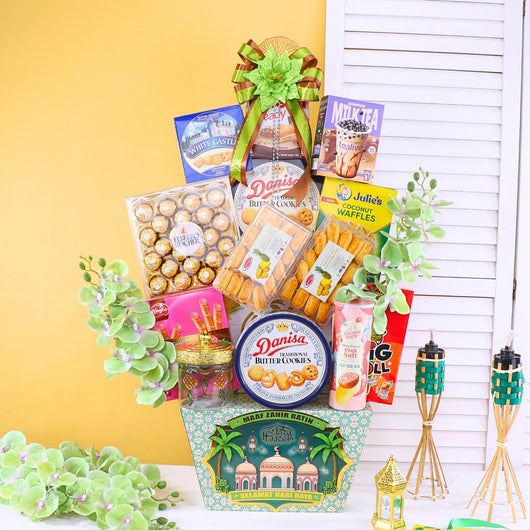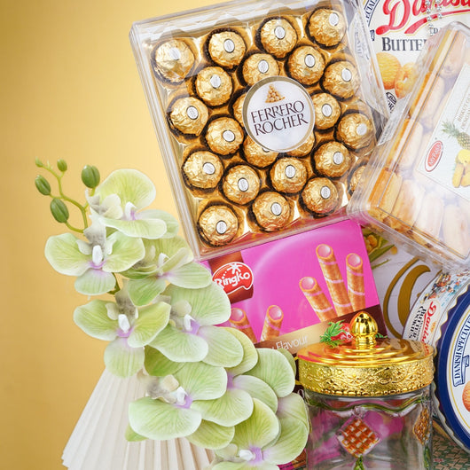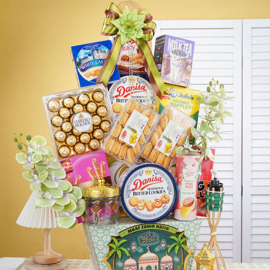 Bring joy this festive season with Raya hampers filled with Ferrero Rocher, tasty cookies, assorted gifts, and stylish artificial flowers. Affordable and perfect for family or corporate gifting with same day delivery in KL, PJ & Klang Valley.