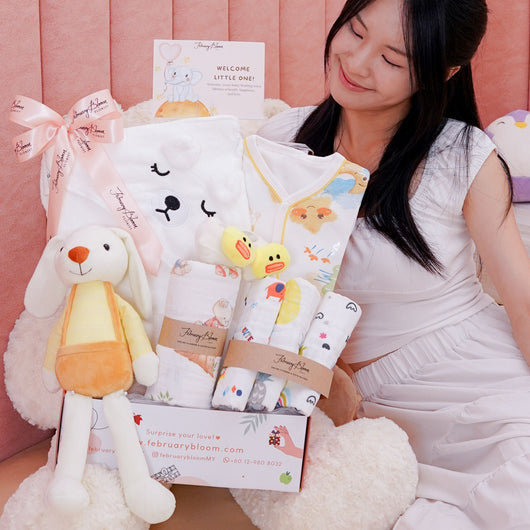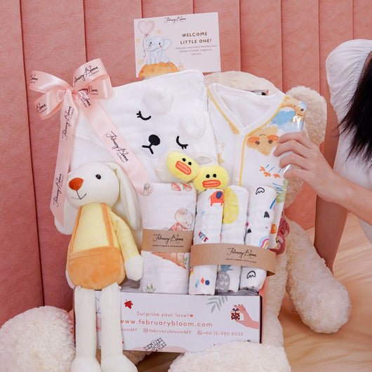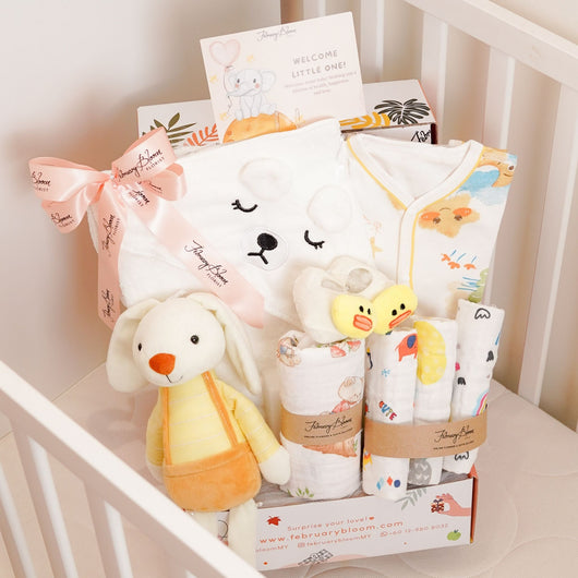 Celebrate the New Little Arrival with our Timeless Treasure Baby Gift. Featuring a cuddly bear, a sweet baby dress, and a mix of essentials, it’s the perfect way to celebrate their arrival with love. Order now!