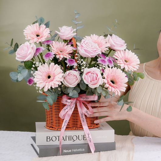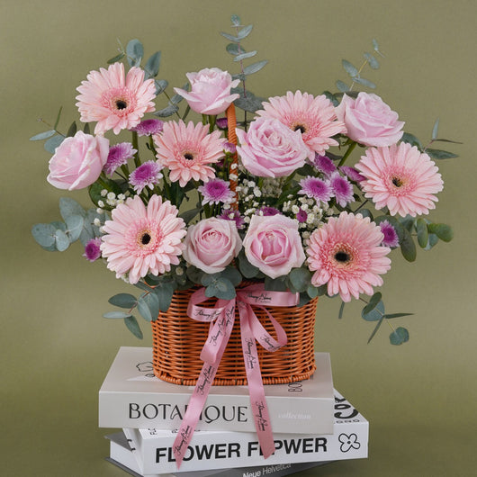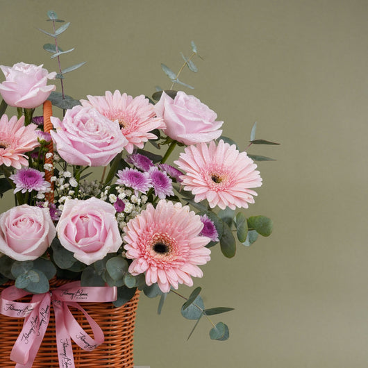 Send You a Smile Today Flower Basket features fresh Sunflowers and Roses, bringing warmth, joy, and a smile to any space. A perfect way to brighten someone's day with nature's beauty.