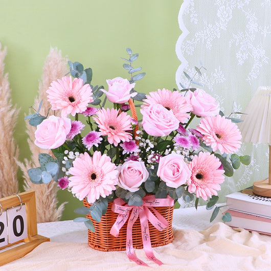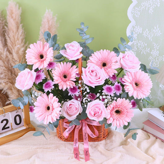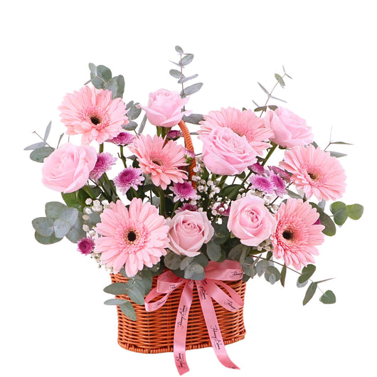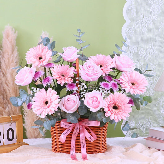 Send You a Smile Today Flower Basket features fresh Sunflowers and Roses, bringing warmth, joy, and a smile to any space. A perfect way to brighten someone's day with nature's beauty.